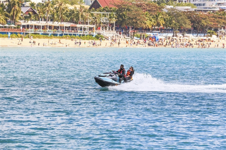 游客在三亚大东海海域体验摩托艇项目。记者 陈聪聪 摄
