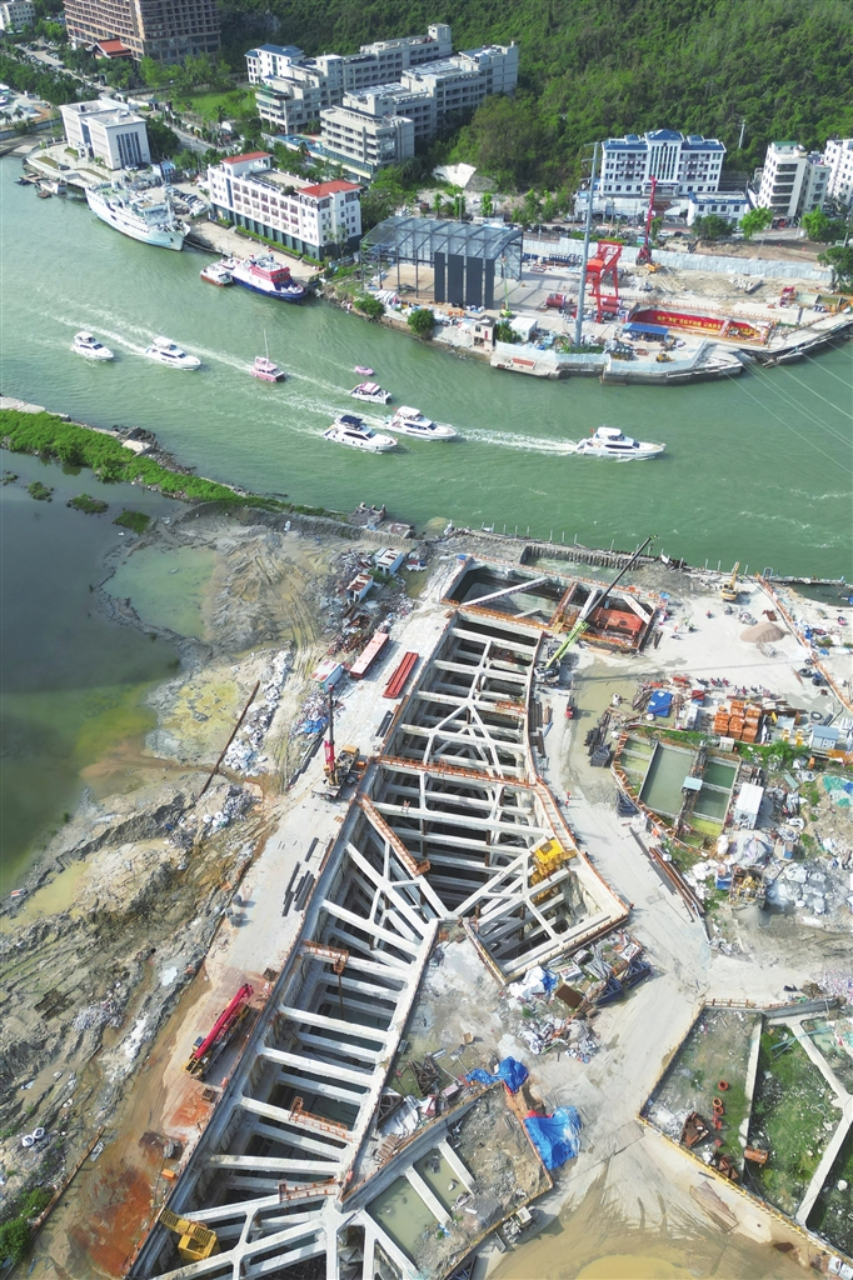 9月20日,俯瞰三亚河口通道工程项目现场。
