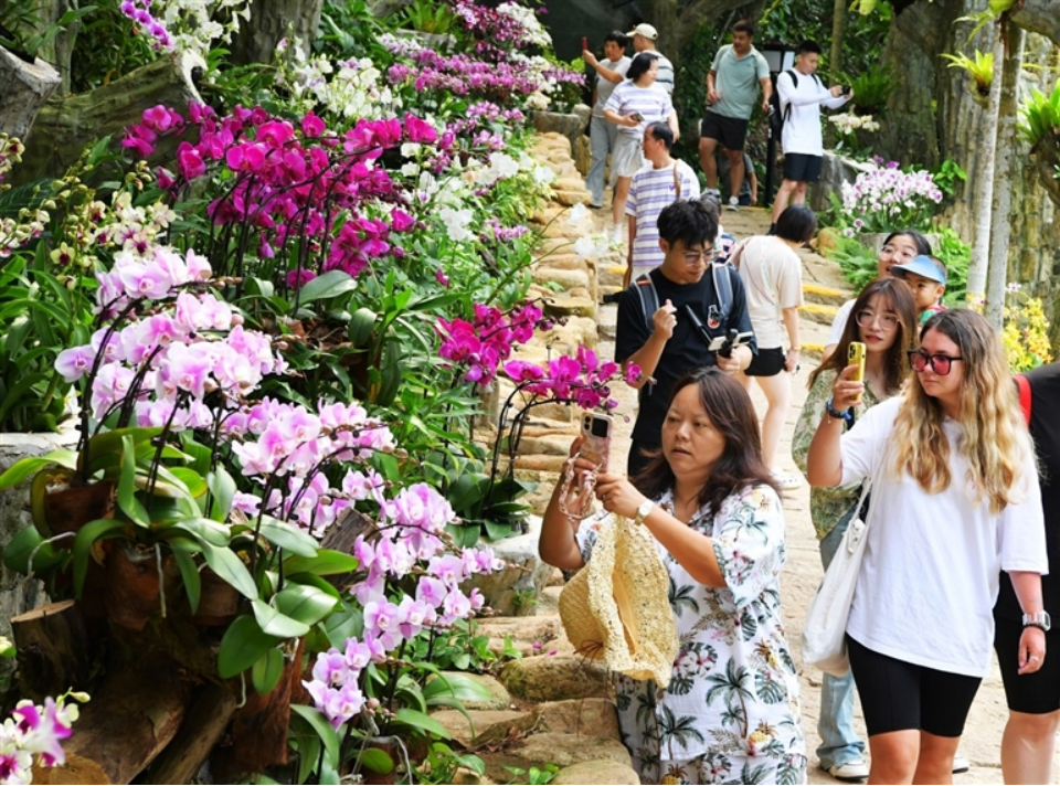 游客在亚龙湾热带天堂森林旅游区惬意欣赏美丽景色。