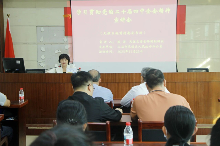 宣讲中,陈潇结合天涯区抱前村发展实际,从党的二十届四中全会精神的重大意义和战略地位以及“十五五”时期经济社会发展的指导方针、主要目标、战略任务、重大举措等方面,讲述如何以党的二十届四中全会精神为指引,切实把党中央的决策部署转化为推动抱前村高质量发展的具体行动。