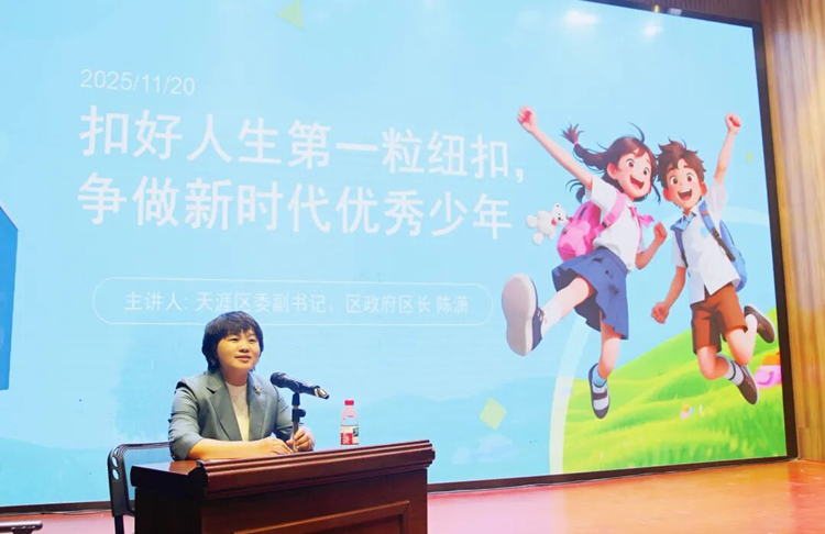 11月20日,区委副书记、区长陈潇以“扣好人生第一粒纽扣,争做新时代优秀少年”为题,为三亚市第三小学的师生讲授了一堂主题鲜明、内涵深刻的思政课。