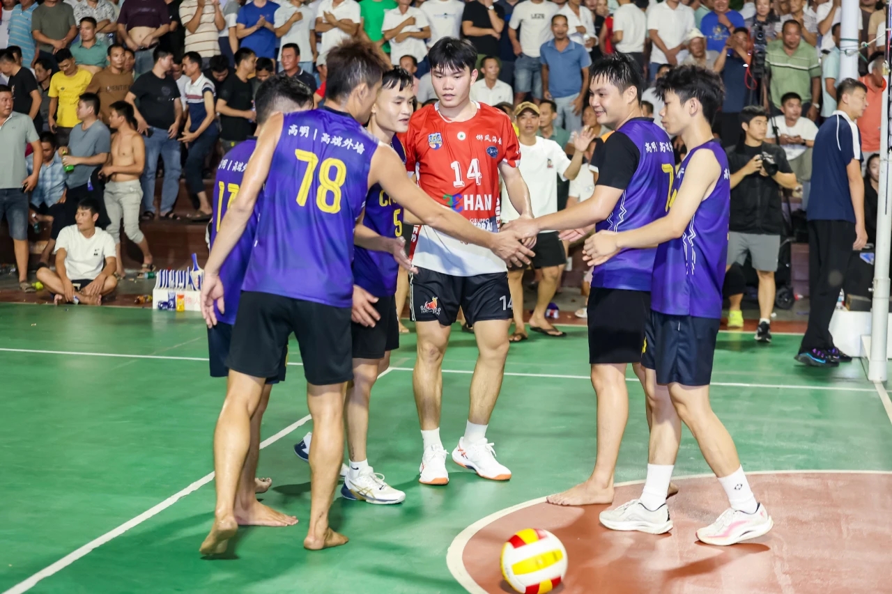 比赛伊始,双方迅速进入状态,发球、接球、传球、扣 杀……每一个动作都一气呵成,展现出高水平竞技。台楼村队员们配合默契,攻势凌厉,屡屡得分;桶井村队员们则毫不示弱,顽强防守,多次救起关键球并通过巧妙的战术组织展开反击。比分交替上升,每一分的争夺都扣人心弦,现场观众欢呼不断,气氛屡掀高潮。决胜局中,双方队员更是拼尽全力,每一次攻防转换都充满了紧张与刺激。桶井村队员们在关键时刻稳住心态,发挥出了超强的实力,连续得分,逐渐逆转比分差距;台楼村队员们也不甘落后,发起猛烈反攻,但最终遗憾未能逆转局势。随着桶井村的最后一记扣杀落地,比赛落下帷幕,桶井村以3:2的优异成绩夺得本次比赛的冠军,台楼村获得亚军。