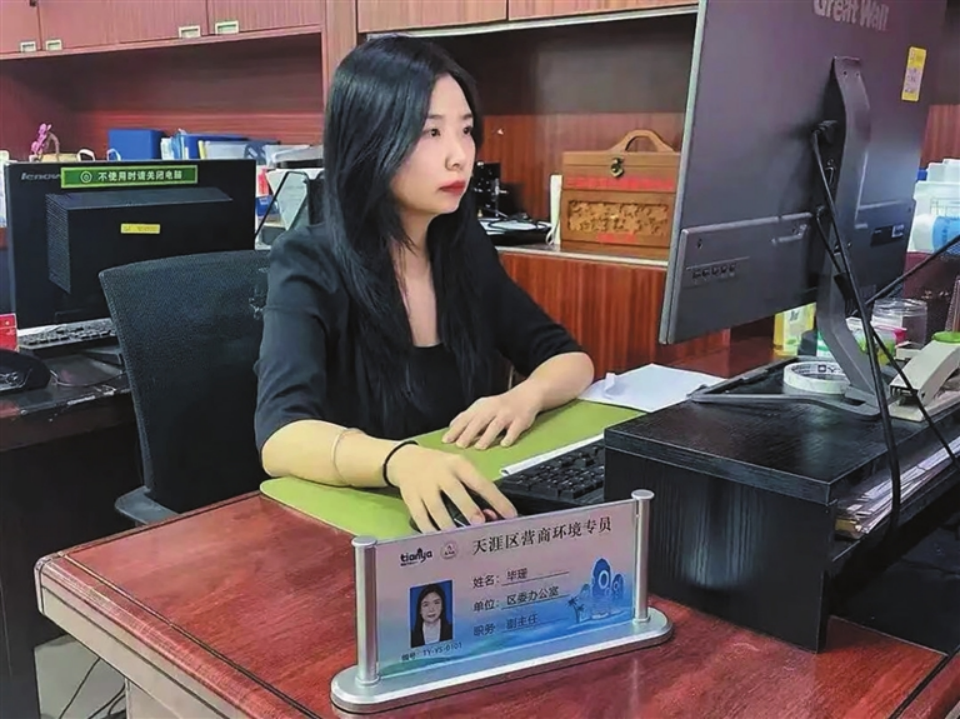 天涯区营商环境专员在线上为企业服务。