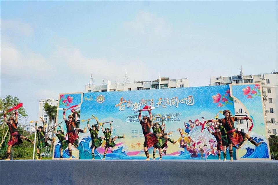 4月12日,由市人民政府主办,市民族事务局、市旅文局、天涯区委统战部承办的2026年“海南三月三·山海同心圆”三亚分会场闭幕式暨琼韵国潮文艺荟在三亚湾壹号广场举行。