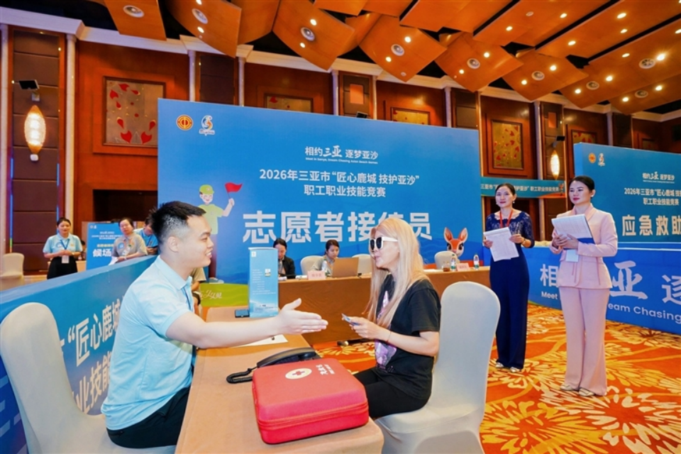 4月11日,三亚湾畔热潮涌动,2026年三亚市“匠心鹿城 技护亚沙”职工职业技能竞赛火热开赛。来自全市各单位一线岗位的280名选手齐聚赛场,围绕应急救助、全媒体运营等5大赛项比拼绝技,以硬核技能为三亚亚沙会保障筑牢人才根基。