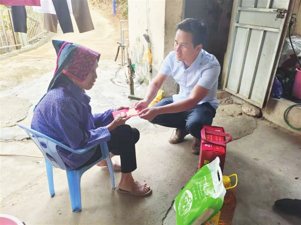 陈文生的儿子患有视力残疾,家庭经济困难,是江小全多年来的“常访户”:定期上门了解需求,帮忙解决种植难题,还指导他家发展槟榔产业。“要是没有他,我这个家早就垮了!”陈文生声音发颤,“他就像自家兄弟一样,逢年过节总记得给我们送米面油,什么事都替我们考虑周全。”