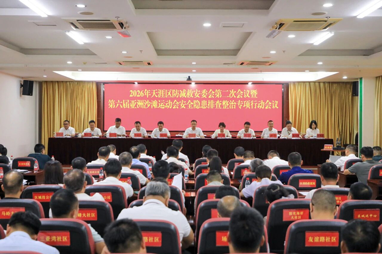 4月13日,天涯区召开2026年防减救安委会第二次会议暨第六届亚洲沙滩运动会安全隐患排查整治专项行动会议,深入学习贯彻习近平总书记关于安全生产重要论述,全面落实省、市相关会议精神,对亚沙会期间安全生产和隐患排查整治工作进行再部署、再推进,坚决筑牢安全稳定防线,为盛会顺利举办保驾护航。